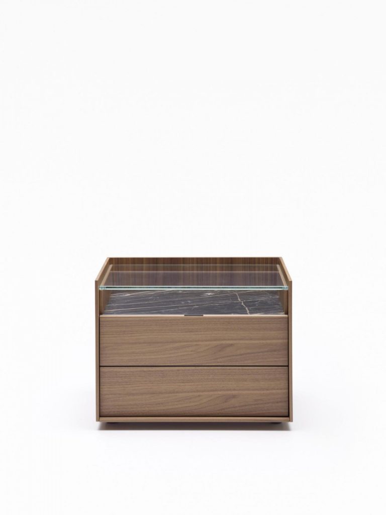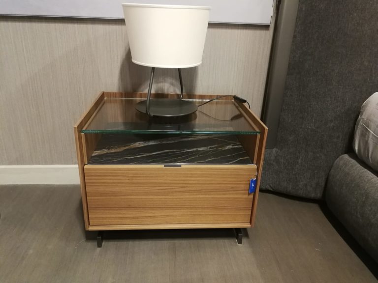 Disponibile L. 62 P. 47 H. 48 in noce canaletto con piano in vetro e top in ceramica