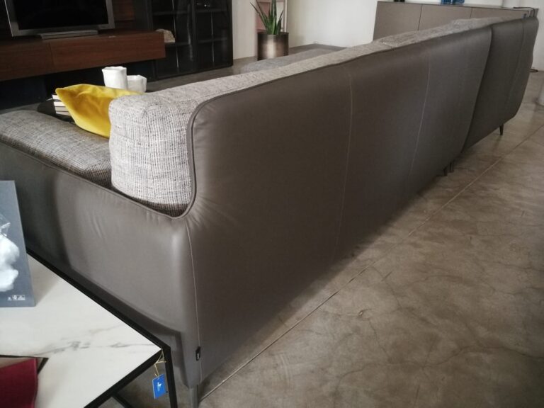 struttura in pelle e cuscini in tessuto