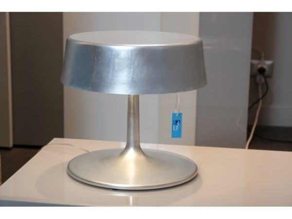 con struttura in metallo tornito in lastra. Verniciato opaco nei colori argento
