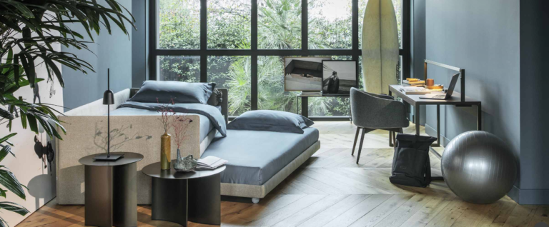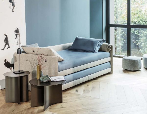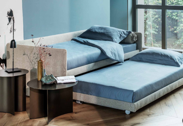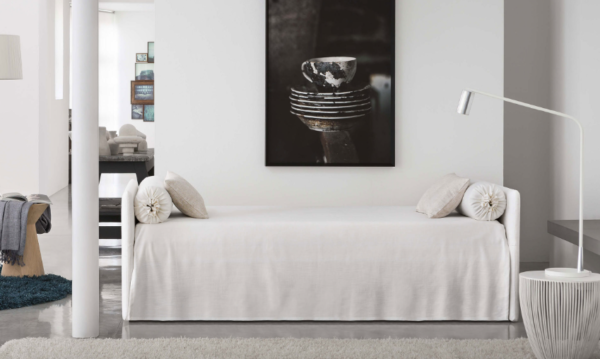 il letto che può essere un letto singolo, un divano, una dormeuse o anche un letto matrimoniale.