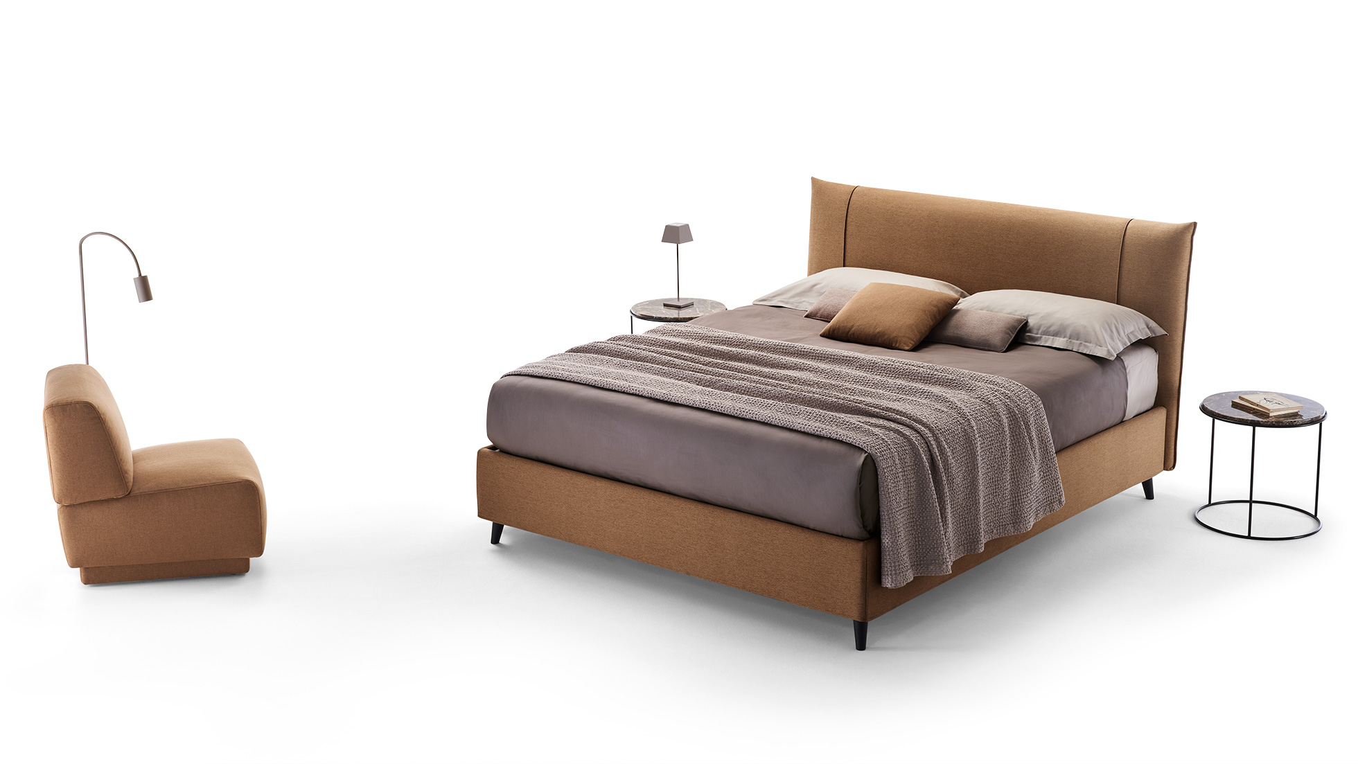 Sakura è un letto dal design contemporaneo ed essenziale. Linee pulite e soffici imbottiture. Le cuciture in rilievo conferiscono un tocco elegante alla testata soft.