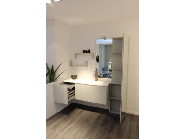 Armadietto a specchio con numerosi ripiani. Una soluzione perfetta per tenere ordinati