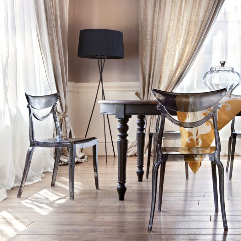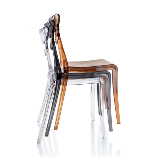 Sedia impilabile in policarbonato brillante (colori trasparenti). Tecnologia air moulding.