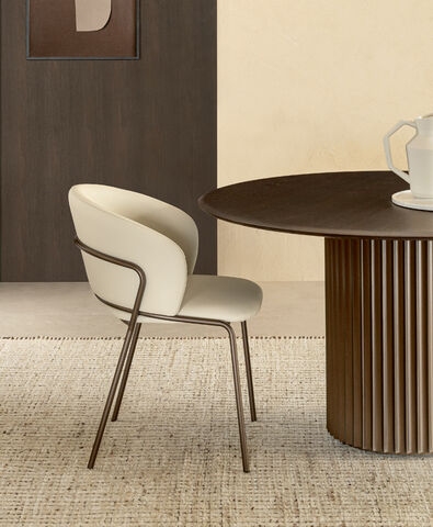 Disponibile con base in tubolate metallico verniciato bronzo e rivestimento in pelle Nabuk e Gold 02