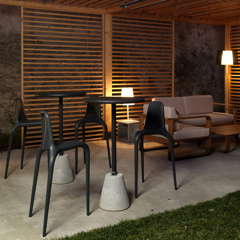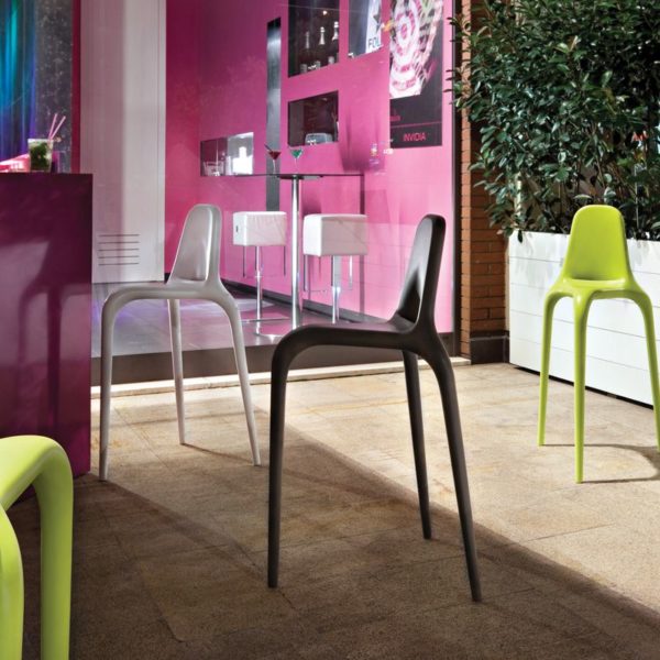 Seduta 3 gambe impilabile, realizzata in omocopolimero caricato di fibra di vetro. Resistente ai raggi UV. Stampato con tecnologia air moulding.