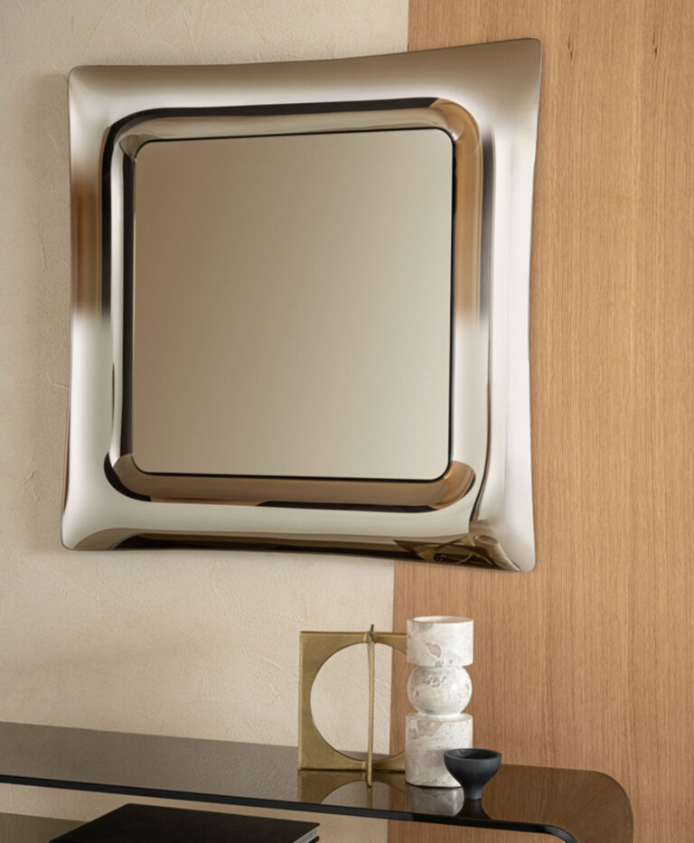 Sinuo è uno specchio moderno, dalle linee armoniche ed eleganti. Presenta una cornice in cristallo sagomata, dolcemente bombata.