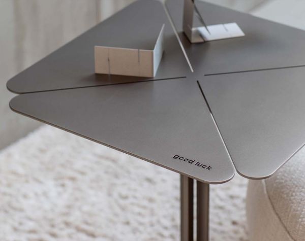 Lucky è un tavolino di servizio leggero, in metallo verniciato con polveri epossidiche in anodi bronze T010.