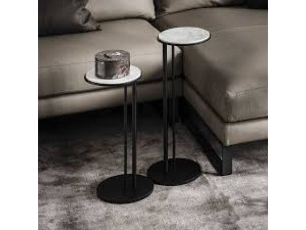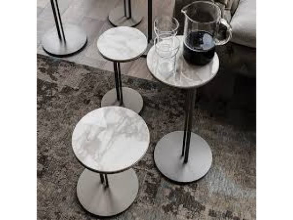 Tavolino con base in acciaio verniciato goffrato titanio, graphite o nero. Piano