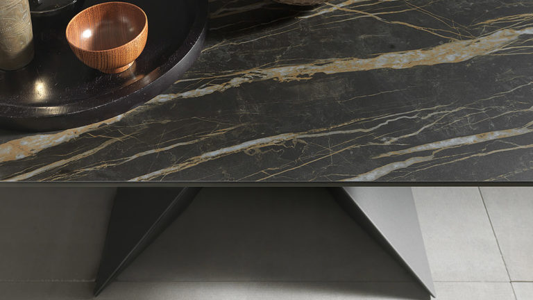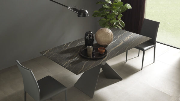 struttura allungabile in metallo grafite goffrato M11 e piano ceramica noir desir opaco K15, meccanismo telescopico.